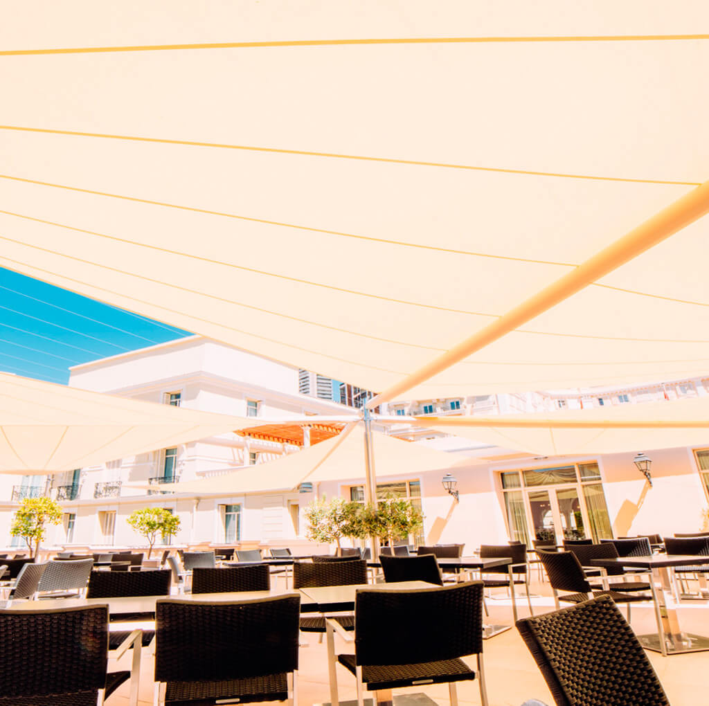 Los toldos vela para terrazas se pueden poner en el techo, en la pared o mediante estructuras autoportantes. En cualquier caso, se fabrican a medida y cada módulo puede cubrir una superficie de hasta 7×7 metros.